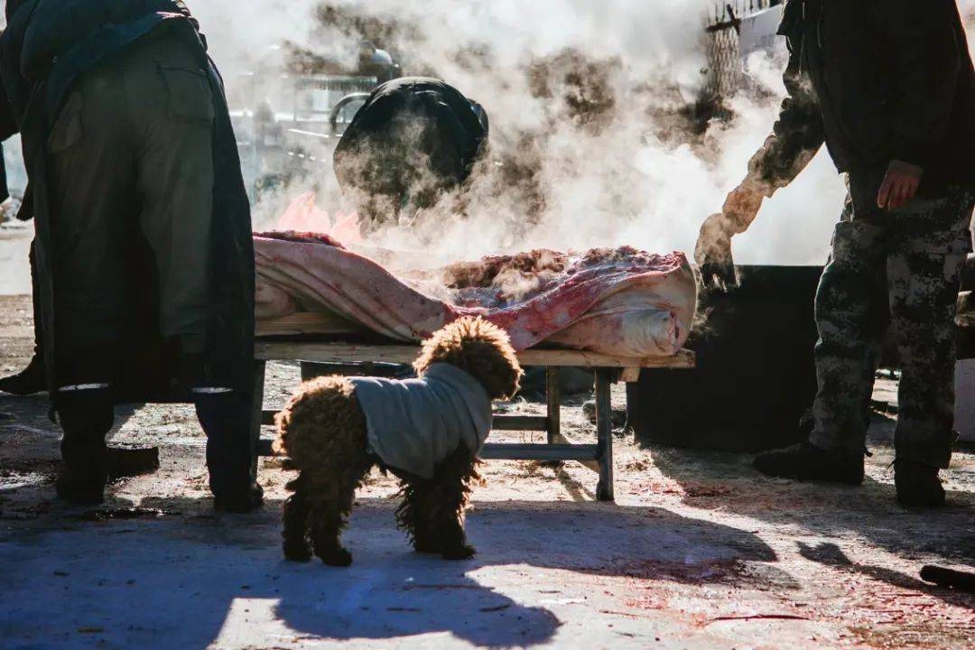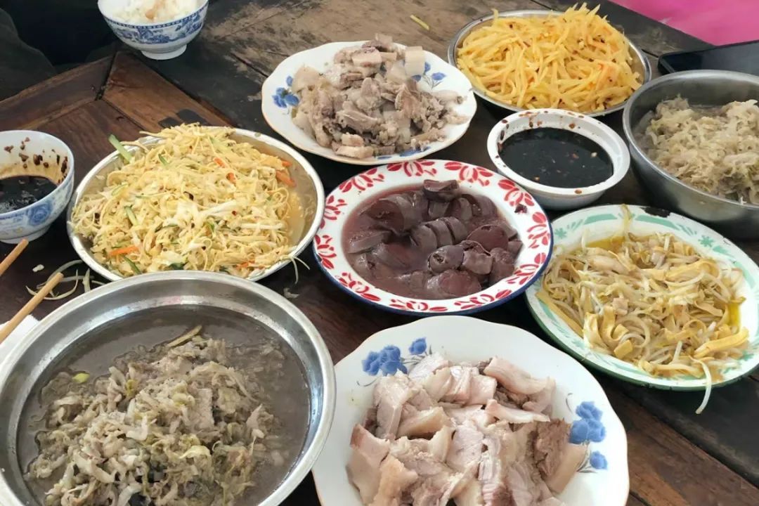 不过要说东北菜里,能统领硬菜江山的,还属炖菜。铁锅炖大鹅、小鸡炖蘑菇、猪肉炖粉条、大肘子……一个“炖”字,是在极寒的黑土地上里,东北人发明的吃饱吃暖最简单硬核的方式。想吃什么扔锅里,不讲究精细的刀工和华丽的摆盘,要的就是一个入味快、滋味好。最有意思的就是看杀猪。杀猪师傅在氤氲的热气里提着血肠从容退场。大锅烧得正热,大块的五花肉,一层白,一层粉,热腾腾颤巍巍地坐在碗盘里,在新年,肉也慈祥似一个弥勒佛了。最好的猪肉,白嘴也吃得,佐上熟油蒜姜,惹得老少都似罗通扫北,顷刻就把大肉吃个精光。连平日里安分的黄狗,也要仰着头,在人们的小腿间转来转去,口水淌了一地。见肉过一巡,主人家哪能让场面冷下来,忙提刀入内,又切去一大堆白肉,二度填满了碗盘。再等酸菜也上了锅,席上的人早已吃得饱醉,只好“闻酸兴叹”了。说什么龙肝凤髓,山珍海味,肉多味美、简单粗暴,才是东北人充满活力的内核。一锅大肉,撑得起东北人节庆的生命之火,也成为了普通日子里的欲望之光。说起中国的硬菜,这是近乎繁杂的集体记忆。东北人听到了山风,福建人听到了海浪。云南人热情地端出见手青、炸蚂蚱、牛撒撇、生皮……用无须多言的野性食材,等待勇士们登临这座食物链的群山之巅;